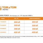 Hotel TOM & TOM pozostawia do Państwa dyspozycji 15 pokoi hotelowych, wyposażonych w TV oraz łazienki. Na terenie całego obiektu bezpłatna sieć wi-fi. Łącznie posiadamy 30 miejsc noclegowych. Doba hotelowa rozpoczyna się o godz 15.00 i trwa do godz 12.00 dnia następnego.